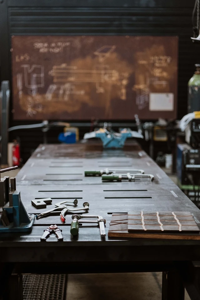 Professionelle Werkstatt für Raumgestaltung mit Schwerpunkt auf Holz- und Metallverarbeitung